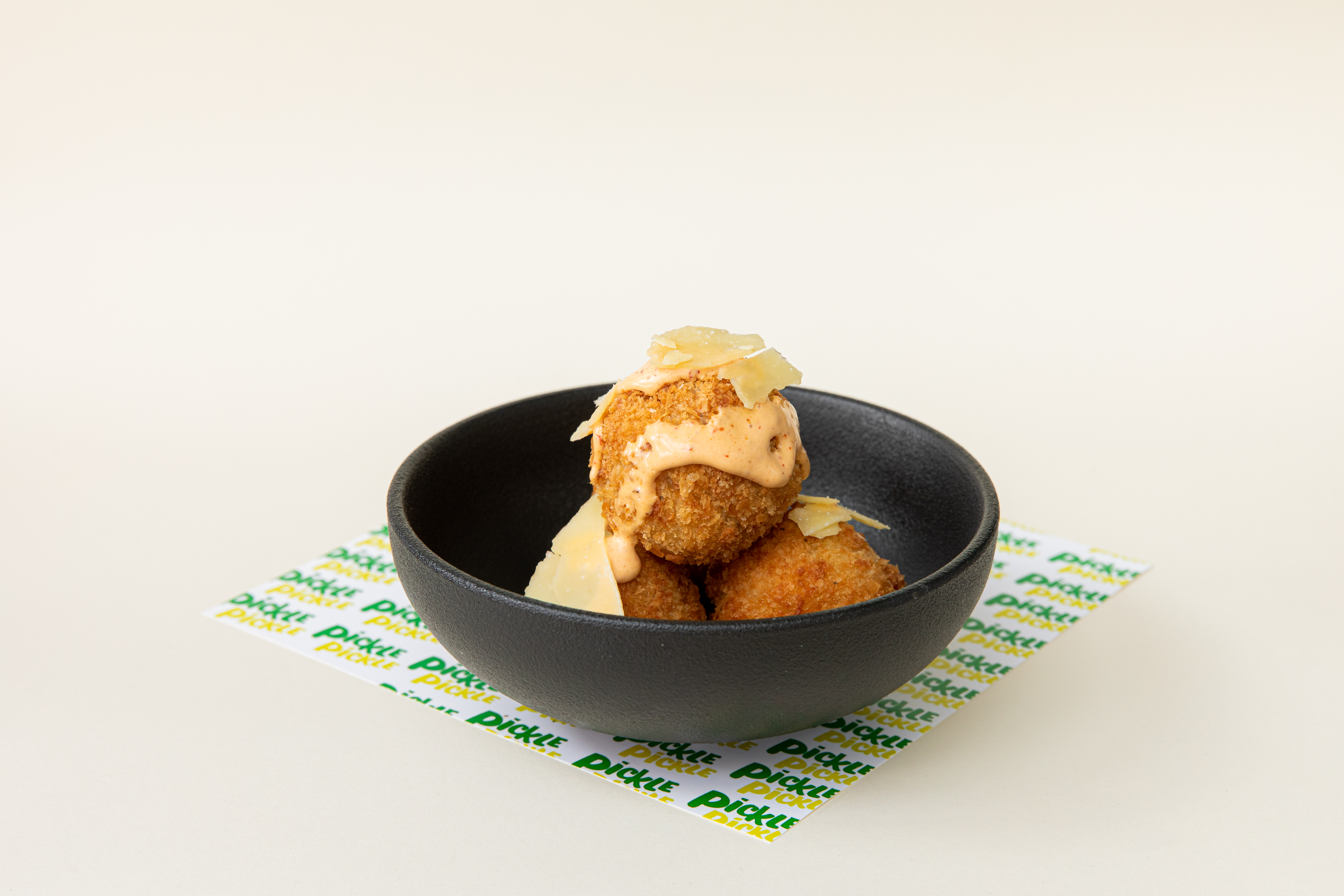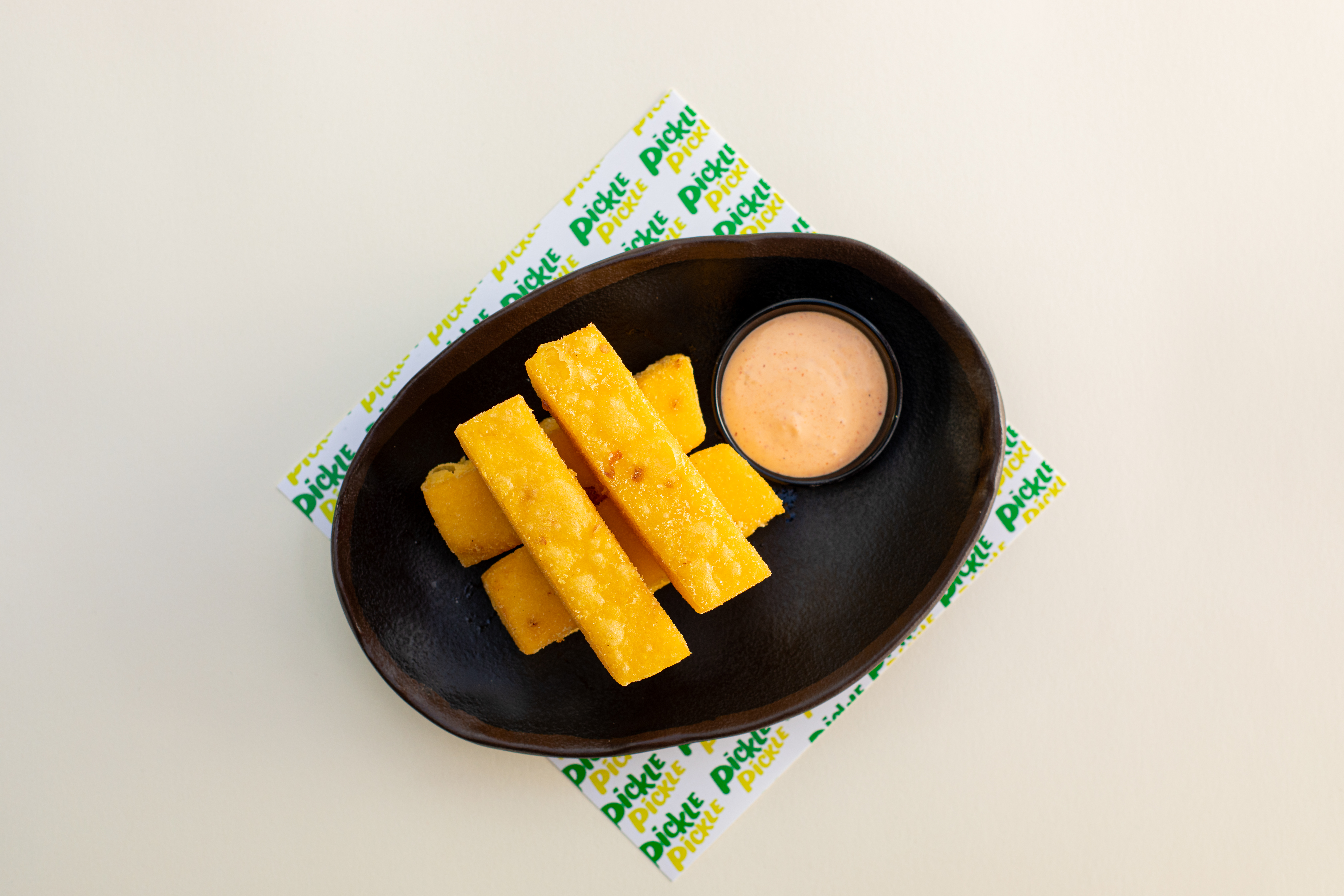 w/ fried chicken, pickles, butter chicken sauce& cheddar cheese sauce