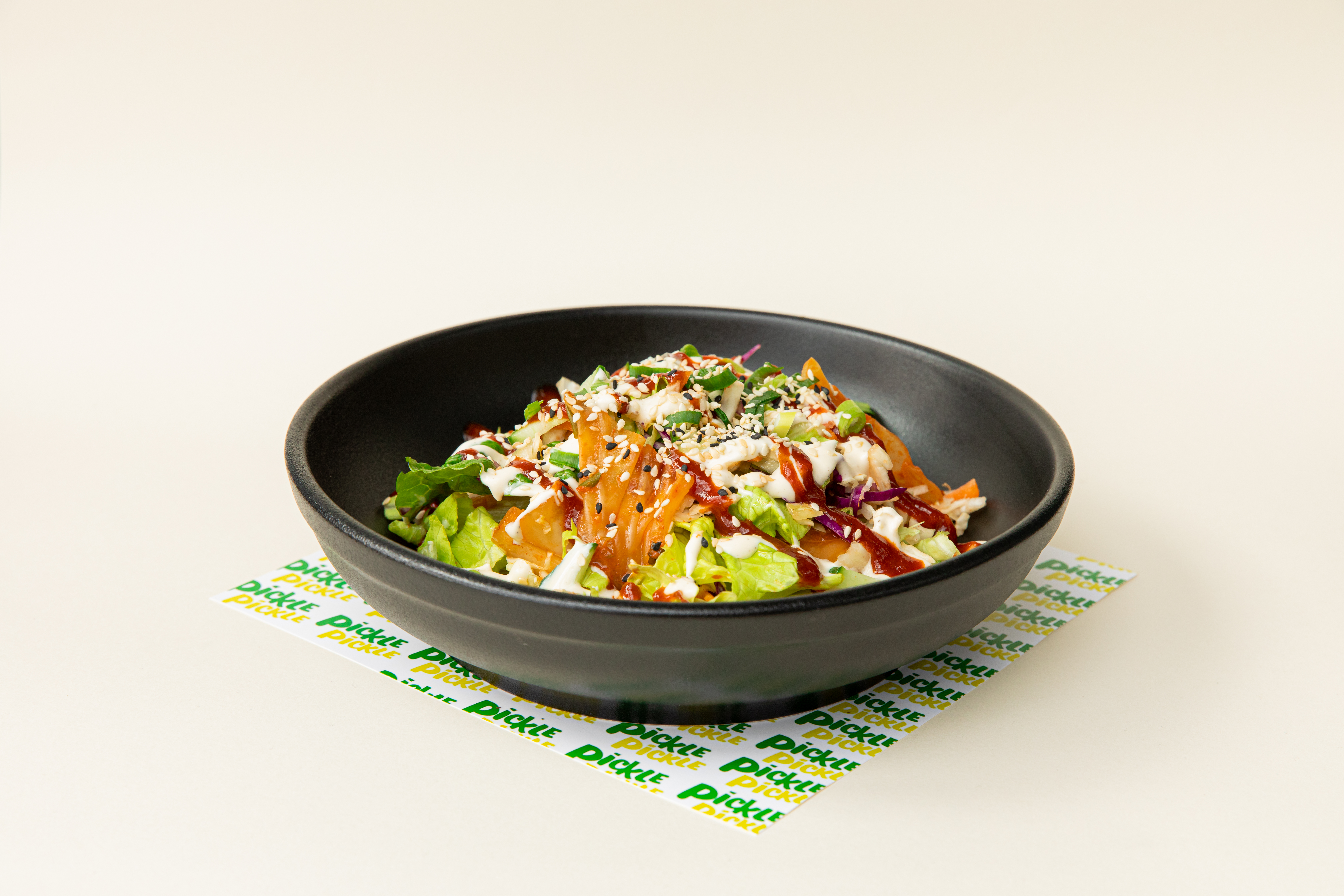 w/ carrot, lettuce, cabbage, cucumber,sesame seeds, garlic aioli & gochujang sauce