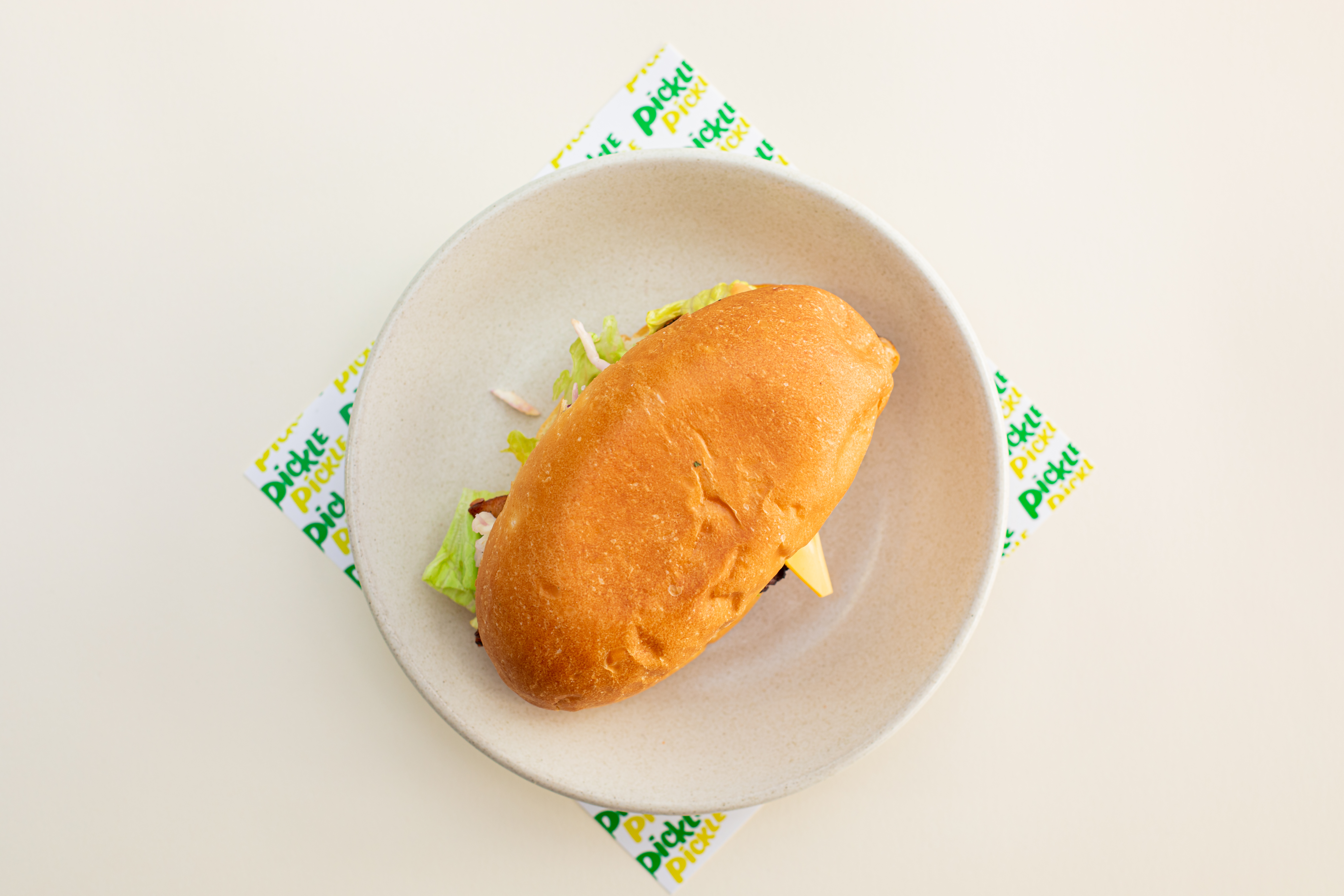 lettuce, pickles, cheddar cheese w/ garlic mayo