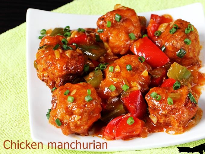 Homemade deep fried veg balls cooked with onion and capsicum touch with soya sauce. Garnished with spring onion.