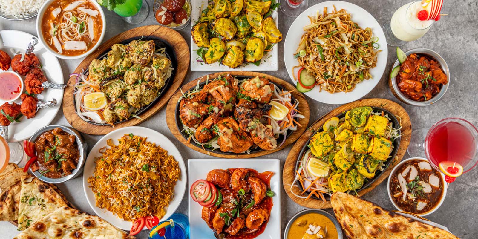 Samosa, vegetable pakoras, onion bhaji and spring rolls.